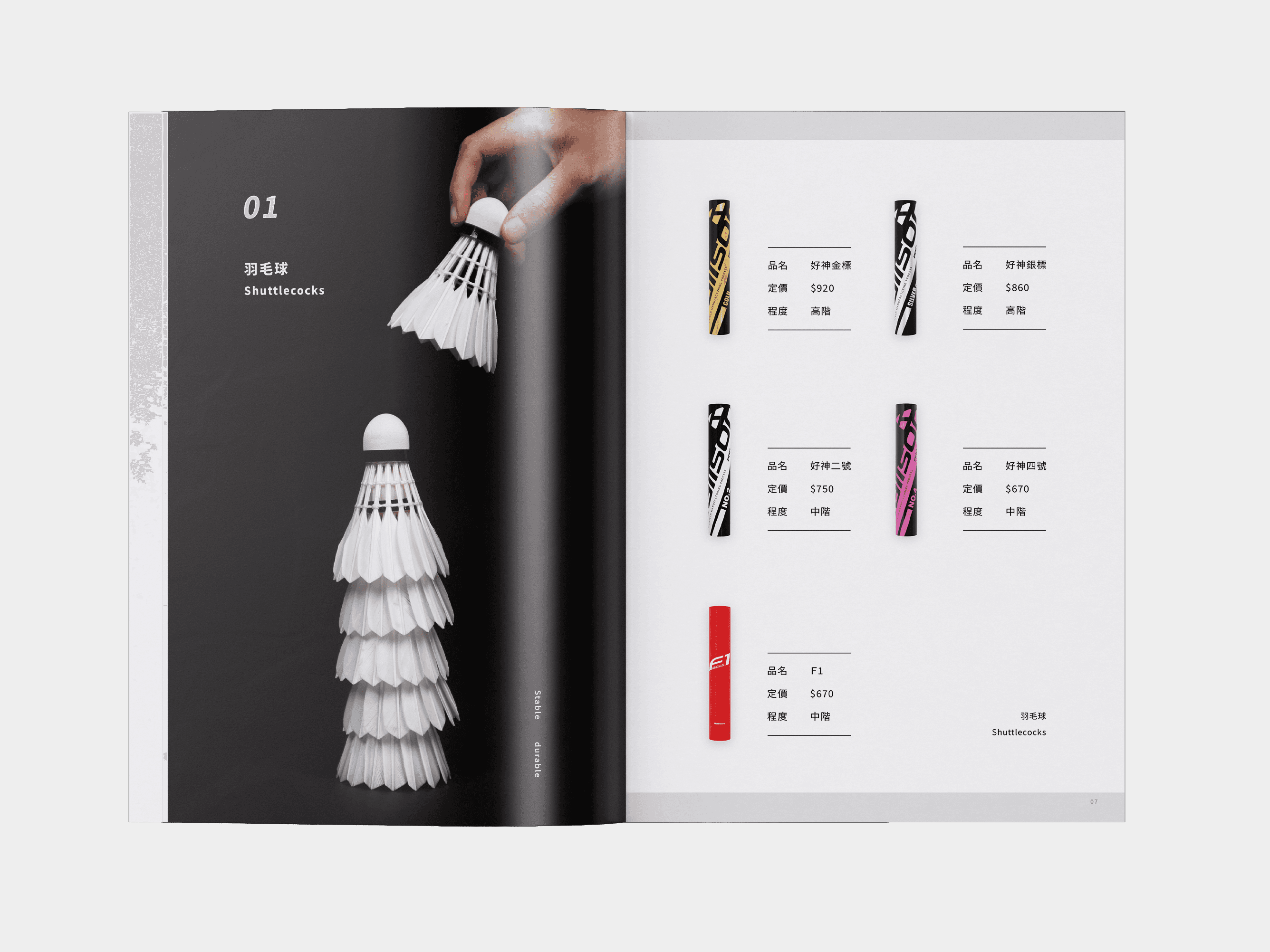 本專案為羽球運動品牌之產品型錄設計,整體風格延續品牌既有的簡約視覺語言,透過清晰的版面編排與留白運用,強化產品特色與閱讀體驗。